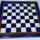 White Marble: The contrasting lighter squares and opposing pieces are made from highly polished Natural Marble, providing a smooth, clean, and elegant visual counterpoint to the Lapis.