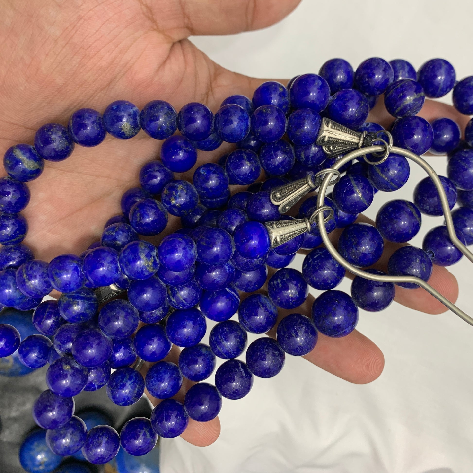 Elevate your style and harness the ancient energy of the Lapis Lazuli gemstone with this exquisite, handmade necklace. Featuring uniformly polished, natural top blue color beads, this piece showcases the iconic deep blue hue with subtle flecks of gold (pyrite) that make Lapis Lazuli so captivating. Each bead is carefully selected and strung to create a smooth, comfortable, and eye-catching piece of fine gemstone jewelry. Whether you're dressing up for a special occasion or adding a touch of elegance to your everyday look, this necklace is a timeless addition to any collection.